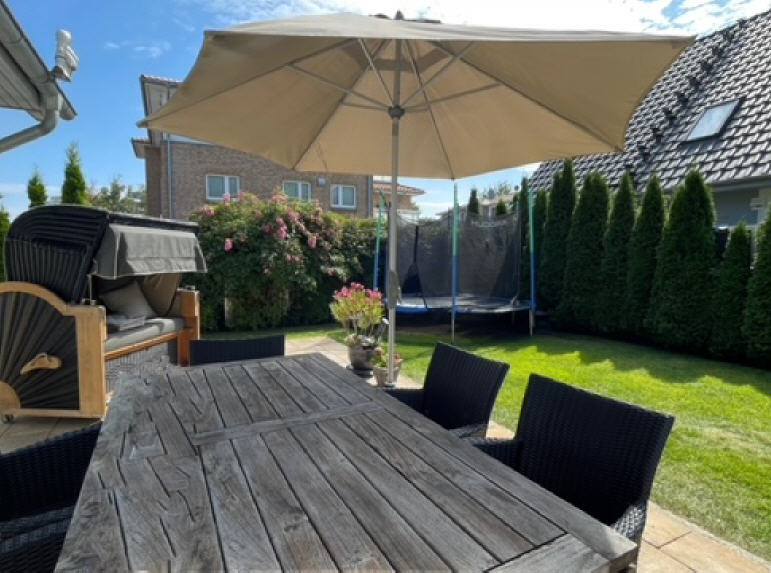 Der Garten rund ums Haus ist umzäunt und teilweise mit hochwertigen Sichtschutzzäunen gegen Einblicke von Außen geschützt.